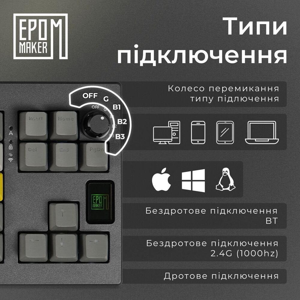 EPOMAKER Shadow-X — это инновационная беспроводная механическая клавиатура, созданная для максимального комфорта, скорости и гибкости в использовании. Благодаря технологии Hot-Swap с Kailh Socket вы легко можете менять переключатели без пайки, персонализируя клавиатуру под свои предпочтения.