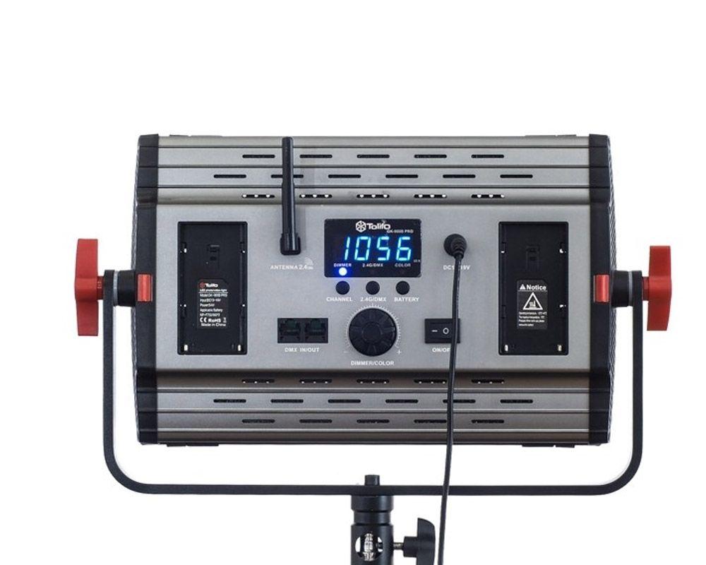 Все органы управления Tolifo GK-S100B Pro расположены на задней стороне осветителя, рядом с которыми предусмотрено информативный экран и ряд индикаторов для отображения и настройки параметров LED панели. Кроме этого, LED панель Tolifo GK-S100B Pro оснащена двумя портами DMX 512 (RJ45 - вход и выход) для управления осветителем с помощью DMX контроллеров, приемником 2,4 ГГц, который позволяет подключить комплектный пульт дистанционного управления и настраивать параметры осветителя удаленно, на расстоянии до 50 метров (доступно 99 каналов синхронизации), и модулем Wi-Fi для настройки параметров с помощью Вашего смартфона или планшета.