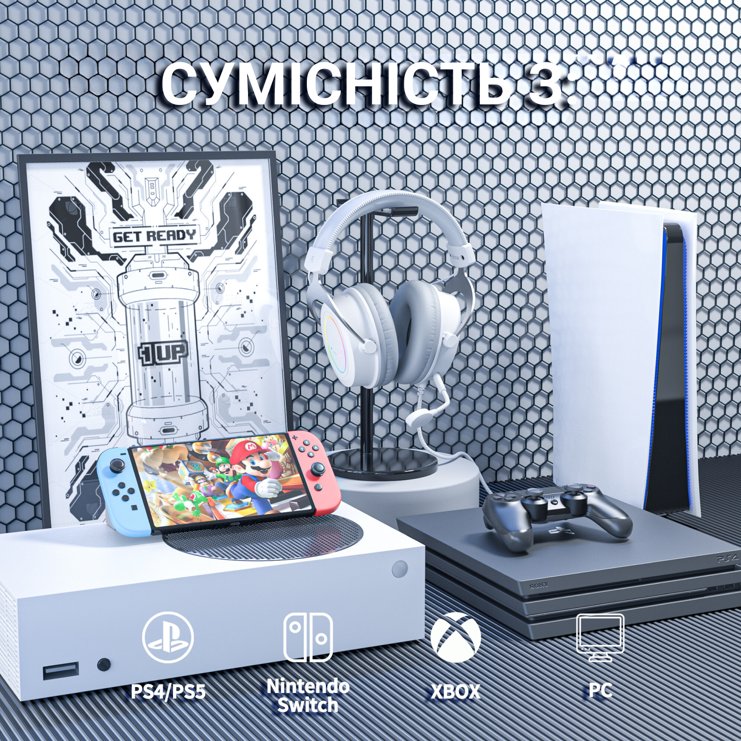 • Совместимость: Mac OS, Windows OS, PS, Xbox, Nintendo Switch, мобильные устройства